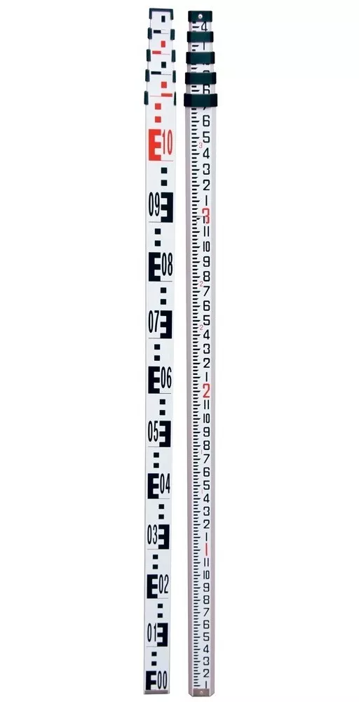 Estadal de Aluminio de 5 Metros con funda de nylon. Incluye niveleta para Estadal. Graduación de lectura en E al frente y milimétrica en la parte posterior.