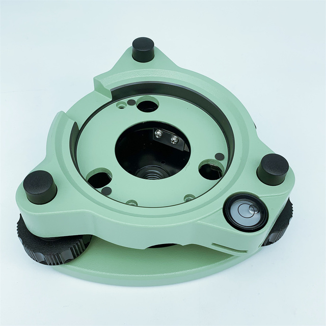 Base nivelante con plomada óptica SitePro. Cuenta con 2x de aumento, tornillo nivelador con línea de centro, nivel tubular circular, entrada de tornillo universal a tripie de 5/8 x 11.