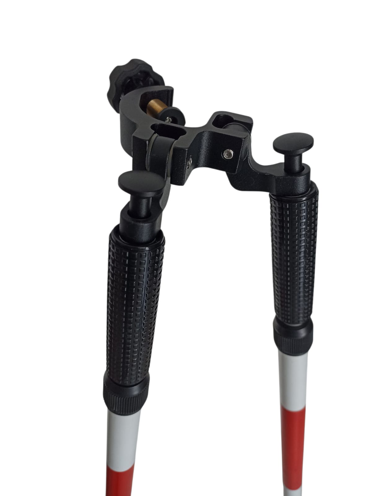 El bípode garantiza estabilidad y precisión al mantener el jalón en posición vertical, incluso en suelos irregulares o con pendiente.