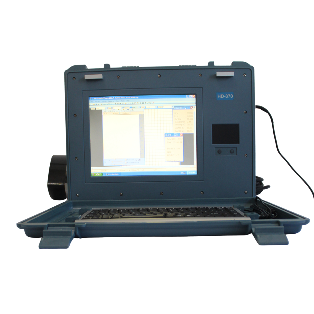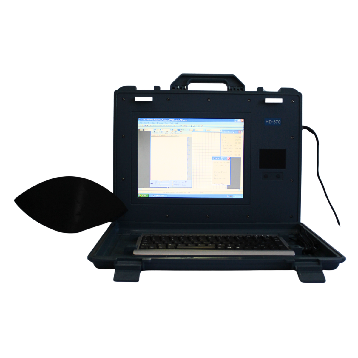La Ecosonda Hi-Target HD-370 se transporta en dos partes, uno con la computadora, mouse, teclado y programas y otro con el transductor, cables y mástil. Compatible con cualquier sistema GPS. Esto lo caracteriza como una solución integral para batimetría sin necesidad de un alto entrenamiento y sin la molestia de demasiados cables por conectar al bote.