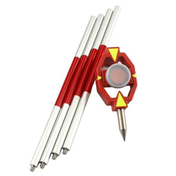 Cuenta con soporte de polímero rojo y carcasa reforzada con fibra para un excelente desgaste y rendimiento a largo plazo. Cuatro varillas de aluminio atornillables con rosca 1/4-20 para lograr cinco (5) alturas de prisma fijas diferentes de hasta 50″ (127 cm).