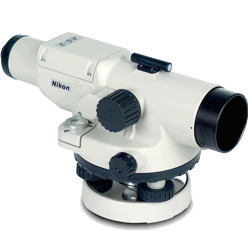 El nivel automático Nikon AS-2 de 34 aumentos fabricado para aplicaciones topográficas y de construcción.