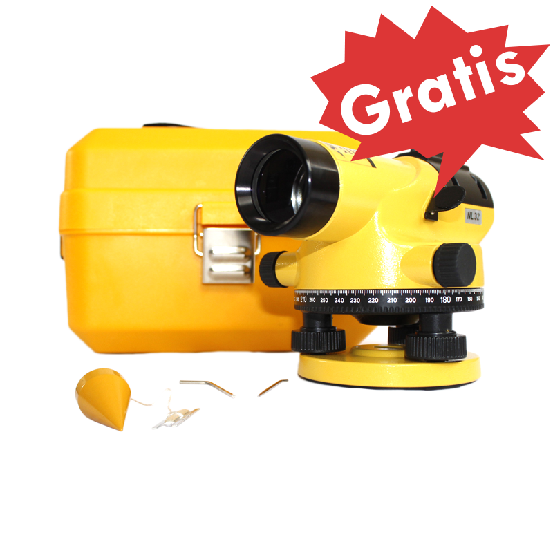 Llévate un nivel de regalo Geosurv NL32 con accesorios (tripie de aluminio y estadal de aluminio de 4m).